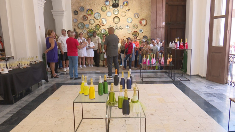 Alexander Rodríguez, diseñador y curador de la exposición, explicó que la misma crea desde la botella como soporte estructural la botella de vino toda una gama de decoraciones textiles.